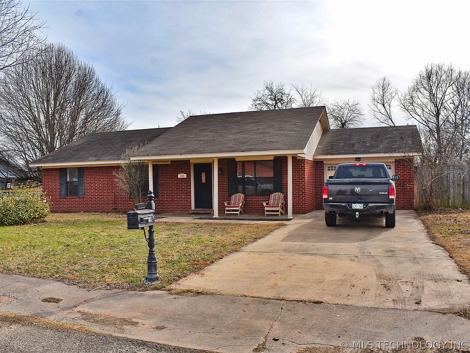 Conveniently located just minutes from dining, shopping schools, and more, this 1,276 square foot (per tax assessor) brick exterior home is great for someone wanting an affordable option in a nice, established neighborhood. Recent updates include new flooring in the guest bedroom and some painting. A portion of the roof was replaced in 2016/2017 per Seller. There is a spacious living area, breakfast nook with pantry closet and a kitchen with modern black cabinetry, a dual basin stainless sink and a dishwasher and electric range with vent hood. The adjacent utility room has full size washer and dryer connections and also houses the water heater and the indoor heat and air unit. Just down the hall is a guest bathroom with a beautiful vessel sink on a honey-hued open storage vanity and two guest rooms, in addition to an owner's suite, which has lovely chandelier lighting and a private full bathroom. The home also offers a one car front-entry garage with an exit door leading to the huge, fenced backyard that has an above-ground pool that stays.