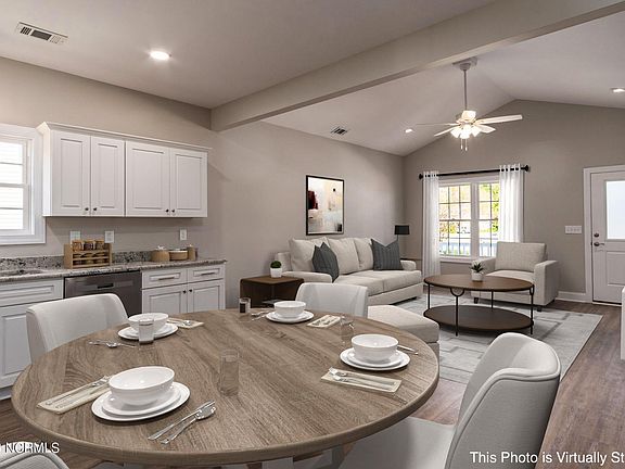 Welcome to your dream waterfront oasis in the charming River Bend community! This stunning new construction 3-bedroom, 2-bathroom home offers a blend of modern design and luxurious comfort. With an open concept layout, this home is designed to meet the needs of today's discerning homeowner. As you enter inside, you'll immediately be captivated by the spacious and inviting interior. The heart of the home is the beautifully appointed kitchen, featuring sleek stainless-steel appliances, an abundance of cabinet space, and exquisite countertops that make meal preparation a joy. The owner's suite is a true retreat, offering a serene haven for relaxation. The spacious bedroom leads to a large walk-in shower and a dual vanity, creating a spa-like experience right in your own home. Luxury Vinyl Plank flooring flows throughout the entire home, providing durability, ease of maintenance, and a modern aesthetic that ties the space together seamlessly. Head outside onto your deck and be prepared to be captivated by the breathtaking views of the pond. Whether you're sipping your morning coffee or hosting a summer barbecue, this outdoor space is perfect for enjoying the tranquil waterfront surroundings. Located just a short drive away, you'll find the convenience of Carolina East Medical Center and the historic charm of Downtown New Bern. Explore the rich history, boutique shops, and delectable dining options that make this area a beloved destination. Don't miss the opportunity to make this waterfront haven in River Bend your new home. Call us today to schedule your private tour.