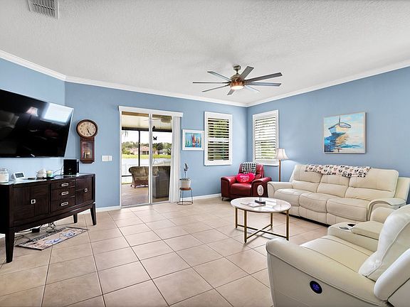 This 2012 built 4 bed 2 bath lakefront beauty is on the market for this nicely reduced price. Here are some features about it that are sure to make you swoon! Large open kitchen to living room design concept with 9-foot ceilings. Formal dining. Crown molding, Corian Kitchen countertops. Custom plantation shutters. Maintenance free PVC fence in the backyard. AC replaced in 2023.