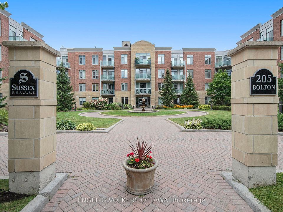 Welcome to Sussex Square, where sophistication meets lifestyle in the most tranquil part of Lowertown. Surrounded by embassies, green spaces, and the historic charm of old Bytown, this exceptionally managed building offers a rare opportunity to live in one of the city's most desirable locations. Just minutes by foot to the Rideau Centre, Global Affairs Canada, New Edinburgh's Stanley Park, and the banks of both the Ottawa and Rideau Rivers, the convenience is unparalleled. 205 Bolton makes a striking impression with its high curb appeal and beautifully maintained grounds, including a serene water feature and inviting common spaces. Residents enjoy access to a refined main lobby, a welcoming social lounge with kitchen and patio, a rooftop terrace with barbecues and sweeping views of Parliament Hill, as well as a top-tier fitness centre. With three elevators, secure underground parking, well-lit locker rooms, bike storage, and thoughtful building management, every detail has been considered to elevate the experience of home. This particular one-bedroom has oversized windows, soaring nine-foot ceilings, and one of the most appealing layouts in the building with 760 sq ft as per builder plans (Arcadia model). The private balcony is a perfect retreat, while the spacious primary living area has room for home office or creative space. The modern kitchen is accented with granite counters and blends seamlessly with the open living area, complete with hardwood floors, and in-suite laundry. The home also includes an oversized underground parking space and a dedicated storage locker for added convenience. With heat and water included in the monthly maintenance fees and the status certificate already ordered, this residence presents a turn-key opportunity to embrace the best of downtown living in an elegant and well-appointed setting. New stove and dishwasher w fresh paint. Extraordinarily clean and tidy... Parking space #88. Locker #A-171.
