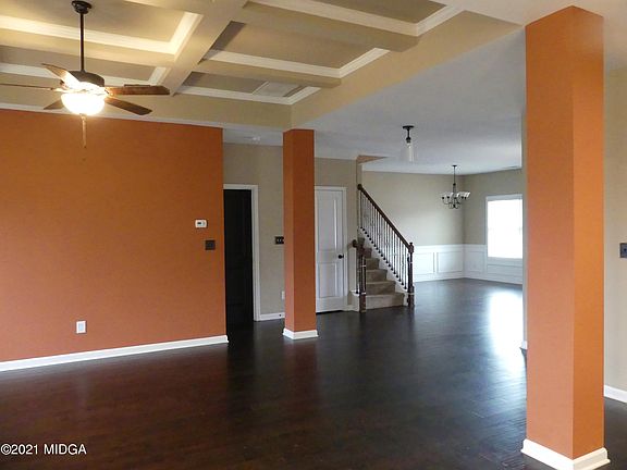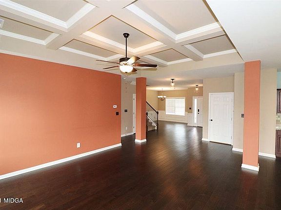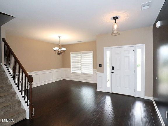 This 5 bedroom, 3 full bath energy efficient Smart Home in the Notting Hill Subdivision of Perry boasts an open concept kitchen, huge granite island, pantry & breakfast area. The front formal dining room opens into the spacious great room with a fireplace & coffered ceilings. One bedroom & bath are located on the main floor. The other bedrooms and laundry located upstairs, to include a master suite with garden tub, granite double sink vanity and huge walk-in closet, as well as a bonus media/gathering room for the entire family! Hardwood flooring in main level living spaces. Great community neighborhood with sidewalks and playground. 100% USDA eligible. Located on a .46 acre level lot, this is the perfect family home.