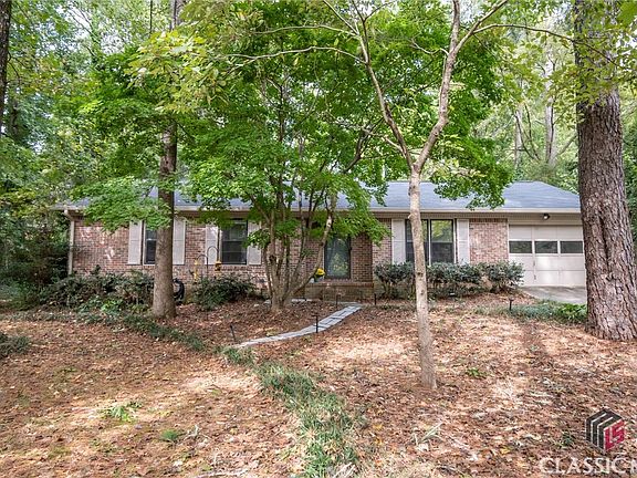 Welcome to 205 Brookstone Drive in tranquil Brookstone subdivision on the eastside of Athens, Georgia. This smart updated 3 BR 2 BA ranch is ready for new owners. Nestled on a corner lot with almost an acre of land, this home has an easy floor plan including spacious living room with custom built-ins and wood burning fireplace. Newly renovated kitchen is large enough to accommodate an island. Additionally, this room has solid surface counter tops, custom cabinets and a walk-in laundry room as well as access to garage. Lovely eat-in kitchen area or can be a more formal dining space with views out of the back sliders to a newer deck. Private primary suite situated at the back of the home. Two light and bright additional bedrooms could flex for other purposes such as an office, media room or nursery. Nice roomy hall bathroom for guests. Newer roof, gutters and HVAC. Multifunctional garage. Large fenced back yard with naturalized landscape, mature plantings and pleasing tree canopy. This solidly built home is conveniently located to shopping, dining and The University of Georgia campuses. Downtown Athens is just a quick car ride away.
