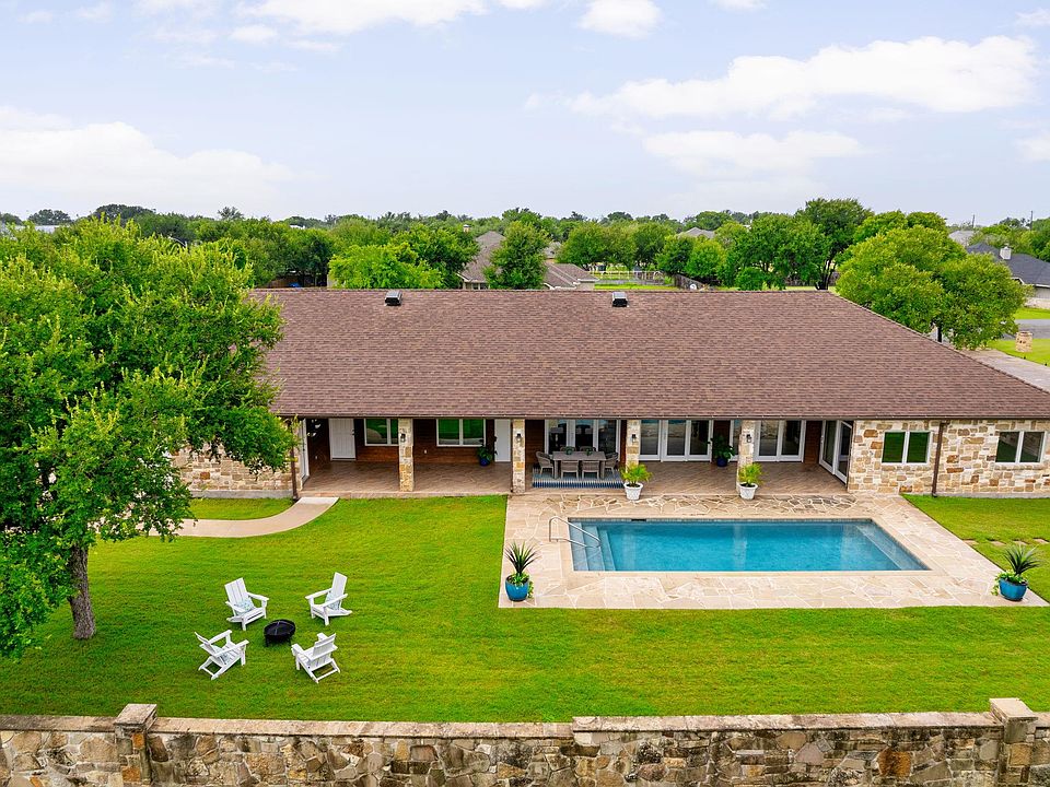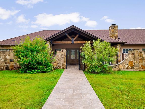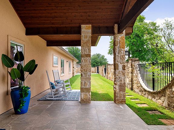 Sometimes a home just feels right the moment you arrive—205 Buckingham is one of those rare places. Meticulously designed and impeccably maintained, this one-story gem sits within the highly desirable Stonehenge West neighborhood behind a private iron gate and wrapped in a stone wall. From the moment you step inside, you’re welcomed by a calming sense of home and premium details. The thoughtfully designed layout includes two full primary suites with en-suite bathrooms, each with private doors opening to the covered back patio and boutique-style pool—ideal for guests, multigenerational living, or simply enjoying your own private escape. The third and fourth bedrooms share a full hallway bathroom and have walk-in closets. Rich wood floors, crank-operated casement windows, and solid wood cabinetry throughout highlight just some of the quality craftsmanship you will notice. A one of a kind polished live-edge wood mantel sits above the cozy stone hearth fireplace. The front and back porch ceilings are finished in tongue-and-groove cedar, and the entrance is framed by striking solid cedar beams that make a bold first impression. The oversized 1,000 sq. ft. garage accommodates two cars, a golf cart, and still leaves space for a workshop or extra storage. Step outside to lush, barefoot-worthy grass, flagstone pool decking, and a serene backdrop of Hill Country trees—offering privacy and peace. The land behind the home is already developed, so your views and quietude remain. Best of all, you’re just minutes from local parks, lakes, golf courses, and the charm of downtown Marble Falls—filled with shops, restaurants, cafes, art galleries, the library, and more. As the day winds down, grab your kayak and paddle into a Hill Country sunset. This isn’t just a house—it’s a lifestyle. And from the moment you arrive, you’ll know you’re home.