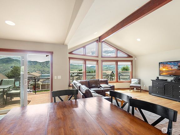 Enjoy breathtaking Lake Chelan with sunset views from this quality custom-built Chelan Hills home, designed with luxury and comfort in mind. Featuring 3 bedrooms, 2.75 baths, & multiple decks, this home blends indoor elegance with outdoor beauty. The spacious upper-level layout includes a great room, open floor plan with beautiful propane fireplace, a custom-designed kitchen, granite counter tops in kitchen and all baths, a primary bedroom & 1 other bedroom. The lower level features an extra large rec room, bedroom, den, lots of storage & large closets, laundry with mud room, and pass-through garage. Just steps from community waterfront parks, pools, Boat Storage and launch, sports courts, and minutes to wineries and year-round recreation.