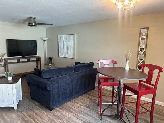 Fully furnished Lovely 2 bedroom 1 bath in a great location close to parks and schools! Built in 2018 so very new. Dedicated parking off street for 2 cars. Inside is all vinyl plank flooring, ceiling fan in the living room, 2 spacious bedrooms with queen beds in each with large closet space. Kitchen is fully stocked with all dishwater and linens, including all appliances, garbage disposal, dishwasher, refrigerator, and microwave. Also included is a full size washer and dryer. Tub/shower in the bathroom. WiFi is provided at no additional charge. All utilities are paid except for electricity. Convenient and energy efficient heating and air conditioning. Asking for a 6 month lease and rent of $1550 a month along with a security deposit. Looking for verified income of 2.5 times gross the rent. Also looking for no smoking, no pets. This apartment is located in a duplex with quiet neighbors. Please message for details. Available now. WiFi is included at no additional charge 2 off street parking Covered front porch Quiet area
