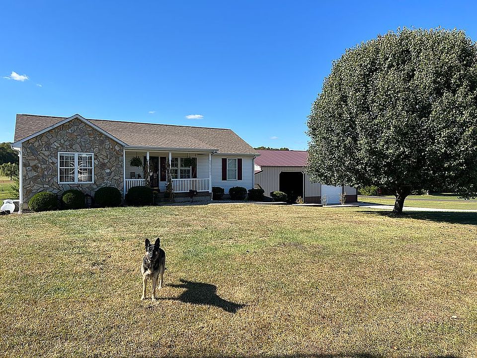 3 BR 3 bath with possible 4th bedroom and living room with fire place and possible office in basement. . 2190 finished sq ft. Sitting on 1.89 acre corner lot. Great subdivision. 15 min to Elizabethtown, 15 min from Brandenburg 15 min to Fort Knox. 40x48 detached garage with loft and a bar. County water , fenced in back yard and swimming pool.