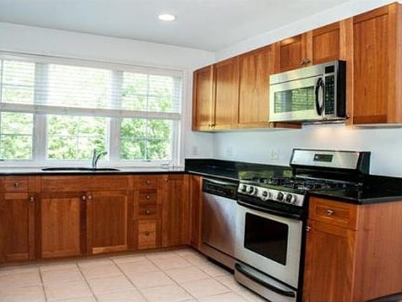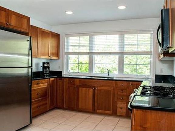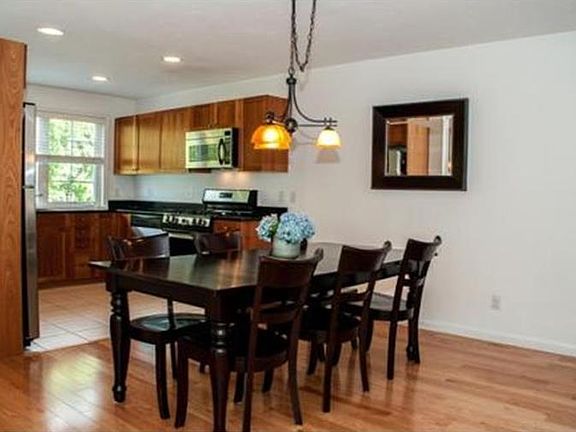 This newer townhouse has everything a buyer would need -- Open floor plan, which is ideal for entertaining, with beautiful hardwood floors in living room and dining room; Large eat-in kitchen with upgraded wood cabinets, granite countertops, stainless steel refrigerator, and gas range; Open dining room; Living room with decorative columns, a corner gas fireplace, half bath, and slider to private rear deck and patio; Spacious master bedroom has vaulted ceilings, double sided gas fireplace, and large closet; Master bath has vaulted ceiling, whirlpool tub and shower, vanity with double sinks, and gas fireplace; 2nd bedroom has vaulted ceiling and it's own private full bath. The garage is a 1-car garage which could be converted back to 2-car tandem garage. The rear of the garage has been finished into a room which could be used for a office, den, TV room, or storage. Living room is wired for surround sound.