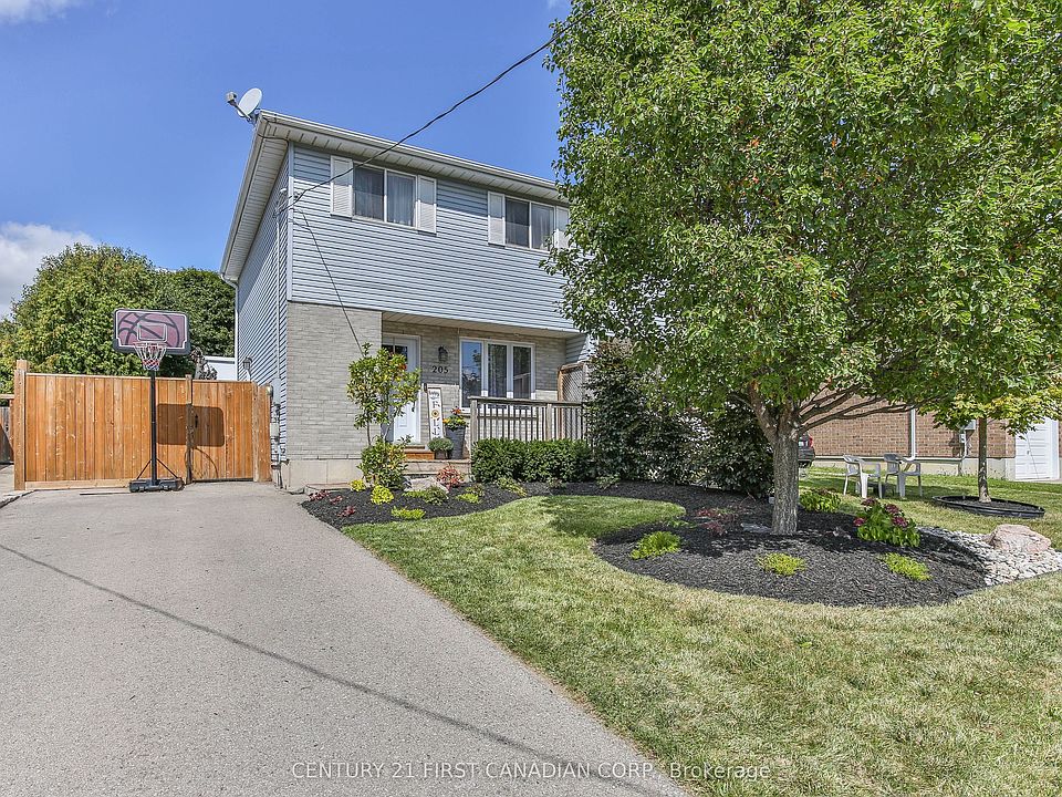 Fully remodelled 3 BR, 1.5 bath 2 storey semi. Enjoy the private fully fenced yard that is professionally landscaped with pergola, water feature, hot tub and greenhouse for the avid gardener plus a bonus shed. Main floor has a formal dining room with built-ins and electric fireplace. The kitchen was fully remodelled in 21' with butcher block counters, tile backsplash, large island with bar fridge. The spacious living room addition gives an extra 202 sq ft of main floor living space. Upstairs has 3 bedrooms and a 4 pc bath. Basement has a 213 sq ft family room with built-ins, and there's a bath rough-in in the storage room. Located mins to the 401 and central to London, Stratford, KW and Woodstock. Roof approx 8 yrs, A/C approx 9 yrs old. Just move in and enjoy!