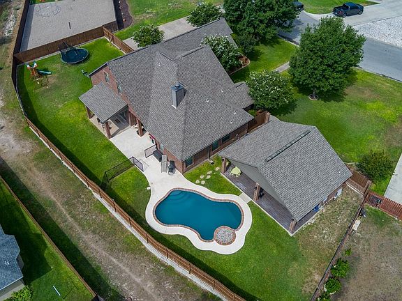 Welcome to your custom-built home at 205 Ceniza Ridge, a timeless 4-bedroom residence situated on a serene cul-de-sac. The backyard oasis features a sparkling pool, covered patio, outdoor kitchen, and a convenient bathroom, perfect for entertaining. Step inside to premium wood flooring throughout the living and kitchen areas, complemented by premium shutters and timeless finishes. A beautiful stone fireplace adds warmth and character. Upstairs, the fourth bedroom, a full bathroom, and a versatile bonus room await, ideal for entertainment, an office, or an exercise space. This one-of-a-kind home comes fully equipped with all appliances included—just move in and enjoy!