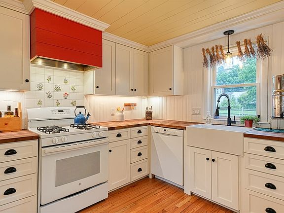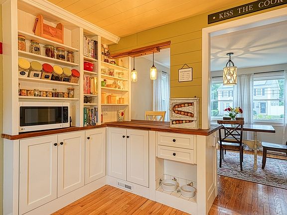 You must see this wonderful dormered Cape in a premium downtown location w/in walking distance of Holliston's schools, Rail Trail, park, restaurants & Lake Winthrop. You will love the stunning open floor plan kitchen/dining room, remodeled 2020 - butcher block counters, apron sink, vent hood, new appliances & breakfast bar. Gleaming hdwd flrs thru much of main level. Living rm w/pellet stove & bay window. Enjoy 1st flr bedroom which could also be used as office/den & modern full bath. Upstairs primary w/double closet & two more bedrms w/ cozy carpet. 2nd flr full bath w/tub/shower. Amazing outside space w/level fenced yard, brick patio 2014, fruit trees, chicken coop, green house & garden beds. Two car garage w/loft. Fantastic updates including H2O heater 2025, furnace 2022, pellet stove 2019, solar panels & roof under them 2016, septic 2014, vinyl siding & bulkhead 2013, windows 2010. Do not miss out on this phenomenal opportunity to own in downtown Holliston!