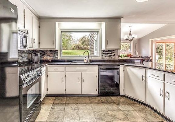 Don't miss out on this gorgeous 7 room, 3 bedroom, 1.5 bath home, offering a spacious and versatile open floor plan! The designer kitchen featuring beautiful ceramic tile floors, granite countertops and a large breakfast bar/island opens to both the dining room and the huge double family/livingroom with vaulted ceilings and a wood stove making this the perfect space for entertaining family and friends. This level also offers master bedroom with en suite half bath, 2 guest bedrooms and full bath. Glass sliders open onto your expansive deck overlooking 2 acres of beautiful, manicured lawns, an above ground pool and storage shed. The lower level, with an office, laundry and storage has great potential and leads into the garage. Build your dream space in the unfinished attic.
