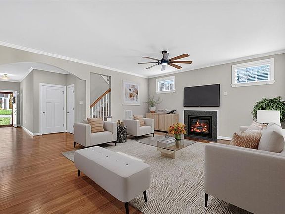 Gas fireplaceFamily roomUpgraded bathroomOpen floor planFrench style doorsComfortable feelEat-in style dining room