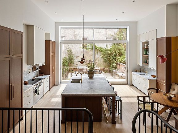 Masterfully envisioned by award-winning architect Mike Ingui, this bespoke home was over two years in the making, with meticulous planning and landmark approvals. Modern engineering pairs seamlessly with preserved historical elements: original fireplace mantels, restored stained glass windows, and a striking pier mirror are integrated with white oak floors, custom millwork, Waterworks fixtures, and a hand-carved staircase. Soaring ceilings reach up to 14 feet. Ultra-high-end triple-pane windows tilt, glide, and turn, ensuring comfort and quiet.