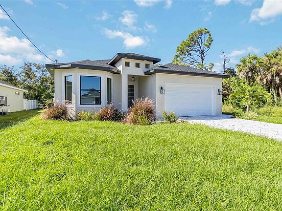 This brand-new, custom-built residence is nestled in the serene deed-restricted community of Rotonda Heights in Rotonda West. Designed for comfort, efficiency, and style, this home offers a peaceful retreat with every modern convenience. Step inside to an open and bright floor plan featuring tray ceilings and ceiling fans in the living room and all bedrooms. The kitchen showcases sleek quartz countertops, stainless steel appliances, ample cabinetry, and a stylish ceramic tile backsplash. Upgraded fixtures throughout the home add a touch of sophistication. The primary suite features a tray ceiling, a spacious walk-in closet, and an ensuite bathroom with dual vanities and a walk-in shower. Additional bedrooms provide comfort for family or guests. Enjoy year-round Florida living on the fully tiled lanai with ceiling fans, perfect for entertaining or relaxing. The paver driveway and curb appeal set the tone for the quality inside, while CITY WATER and SEWER provide convenience. Built with energy efficiency and safety in mind, the home includes spray foam insulation and hurricane-impact windows. Close to schools, shopping, dining, golf courses, and world-famous beaches and barrier islands such as Manasota Key and Boca Grande, this property offers the best of Southwest Florida living. Do not miss the chance to call this modern masterpiece your new home.