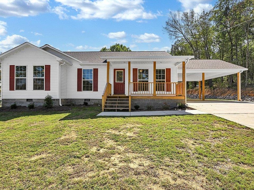 This beautiful new construction features an open floor plan with a large covered front and back porch, complete with ceiling fans for added comfort. Upon entering, you will find an open kitchen and living room, both boasting LVP flooring and neutral paint throughout. The home includes a large kitchen with custom cabinets and an island. The living room features vaulted ceilings. Continuing down the hallway, you'll find an oversized laundry room. The home offers three bedrooms and two bathrooms, with the master suite providing ample space and walk-in closets. The master bath includes double sinks and abundant cabinet storage. Situated within the West Point School District, this home features a private backyard. Conveniently located, the property is just minutes from I-65 and downtown. The seller will offer $5,000 towards the buyer's closing costs with an accepted offer.
