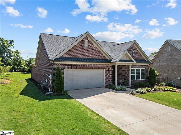 Welcome to Beautiful Paxton Meadows!  A low maintenance 55+ community just 5 minutes to downtown Greer! This MOVE-IN READY, ONE-LEVEL, all BRICK home is ready for YOU!  On one of the roomiest lots in the neighborhood, this home boasts UPGRADES galore! The home is beautifully appointed and meticulously maintained. Fresh neutral paint throughout, abundant transom windows for extra natural light, and multiple tray ceilings are your backdrop as you make this home your own! The current owners chose the Deluxe Kitchen package:  ("Wow-Factor" anyone?!) GE Profile appliances: double ovens, stainless fridge, gas stovetop and hood, upgraded cabinets with pull-out shelving with soft close hinges, tile backsplash, pantry, and a large farmhouse sink!  Did you see the oversized quartz island with seating up to SIX?   Truly the heart of this home, for casual dinners for two, or a gathering spot for a crowd!  The dramatic slate fireplace with shiplap surround is the focal point of this spacious living room with gorgeous upgraded luxury vinyl plank flooring. The primary bathroom has a beautifully tiled WALK-IN SHOWER, comfort-height fixtures and a sun tunnel skylight: (which doubles as a nightlight after dark!) Your guests will enjoy a quiet spacious bedroom and full bath in this split floor plan. But wait! Theres’s more:  There’s an additional “Bourbon Room” with double doors… perfect for a home office, a craft room, an additional TV area, or for…. well, BOURBON (NO, it’s not included, sorry:) You say you need plenty of storage? No problem! The extra-wide two-car garage has shelving and a pull down attic.  Just inside is an extra storage/craft/pet/second pantry/decor room that can hold all of your treasures.  The walk-in laundry room has additional shelving too! Wait until you see the private courtyard and covered patio!  You’ll enjoy a fenced-in yard with dusk-to-dawn landscaping lights.  There’s plenty of room for outdoor leisure activities: working in the raised garden beds, or socializing with friends and family around the fire pit. The Adirondack chairs and bed swing are included! Your new home includes lawn maintenance, and an irrigation system. Plus your property is directly across from the Pavillion:  a covered gathering spot with tables and a fireplace where lots of social activities and clubs gather! Goodness, even all of the appliances are included with this one. Don’t settle for less. You deserve the peace and quiet of this lovely home and community.  Book your showing and see 205 Courtyard Court  for yourself!