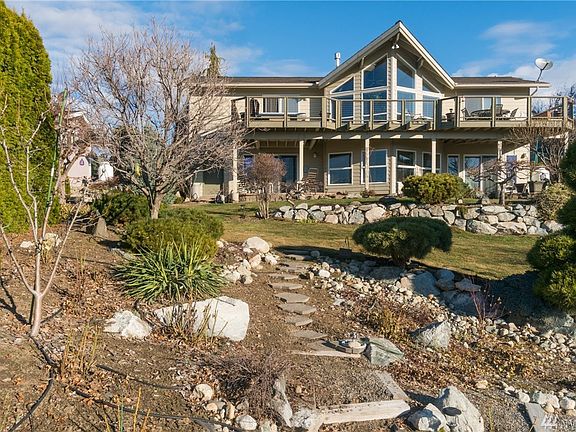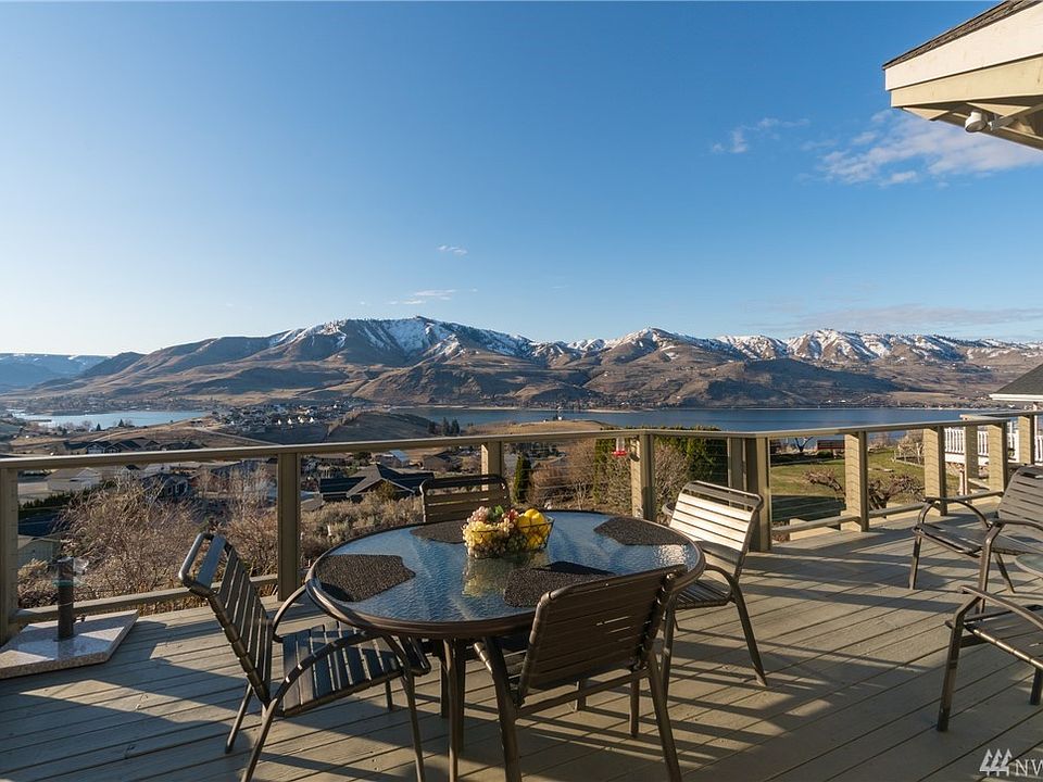 COMMUNITY WATERFRONT- Chelan Hills. Enjoy sunshine and sweeping views morning to dusk in this 4 bdrm/2.5 bath meticulously-maintained home. This spacious home offers all the right spaces for entertaining; a bright living room and open kitchen/dining room with access to the expansive deck w/hot tub. Separate living areas on both levels. Large workroom, wine room, extra storage. Beautifully landscaped yard. Community waterfront, pools, dock and boat ramp.