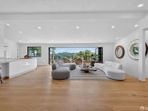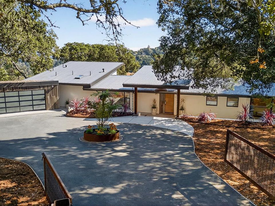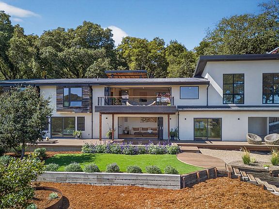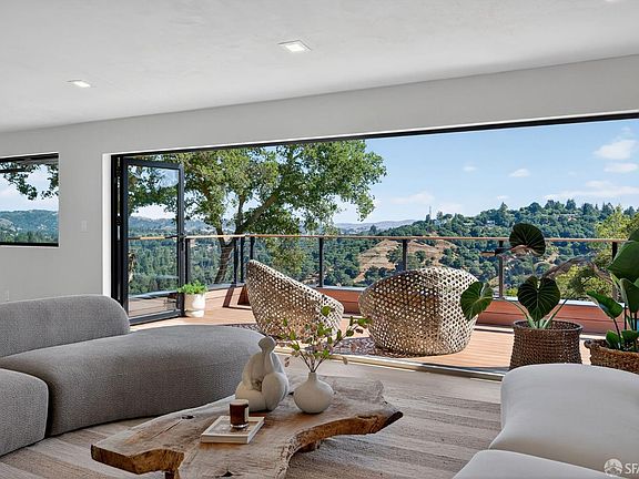 This turn-key residence offers privacy on a tranquil cul-de-sac, surrounded by lush landscapes and a dramatic 40-foot water feature at the grand entrance. Awaken to breathtaking panoramic views every day. Featuring two primary suites: the first with soaring 14-foot windows, the second with seamless access to the expansive wrap-around deck. Both include spacious walk-in closets and spa-like en suite bathrooms. Perfect for entertaining, the open-concept kitchen and living areas flow via 20-foot folding glass doors to an outdoor deck. The chef's kitchen boasts premium quartzite countertops, a generous island, and high-end appliances. On the second floor, enjoy seamless access to the wrap-around deck and built-in conversation fire pit. Additional amenities include a TV room, private office, covered outdoor gym, and rejuvenating steam shower that turn everyday life into a perpetual retreat. The ADU supports a one-bedroom, one-bathroom unit featuring a spacious living area, full kitchen, and private deck. Steps from the community pool, enjoy resort-style amenities without the upkeep. Disclosures available please contact via text, call, or email for a private viewing. Discover your sanctuary in the serene hills with this newly built bespoke home, priced below recent bank appraisal.