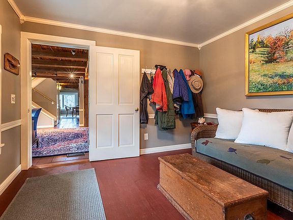 Intuition Farm is superbly located in the heart of horse country surrounded by hiking and horse trails and 30 minutes drive away from skiing. The classic cape-style home, discreetly set back from the gravel town road, has been comprehensively renovated with the goals of increasing energy efficiency and comfort with upgrades to mechanical systems and enhanced aesthetics. All new thermal windows were installed together with foam insulation, standing seam roof, a solar array and a Generac whole house back-up battery system for self-sufficiency in harsh weather. The siding was replaced with Hardi-plank clapboards and the kitchen and baths were renovated. Surplus electrical power produced is allocated to the homeowner by a net-metered contract. The open floor plan on the main living level is accent by wooden beams and ceilings. Modern thermal windows allows sunlight to illuminate the interior without compromising heat loss. A 4-stall horse barn is designed to accommodate recreational horse owners and another offers room for a variety of pastimes or a home business. Horses can be rotated among paddocks near the home or turned out on the open hillside pasture for summer grazing. The property provides privacy without isolation just minutes away from the Villages of Woodstock or South Woodstock. Country living at its finest.