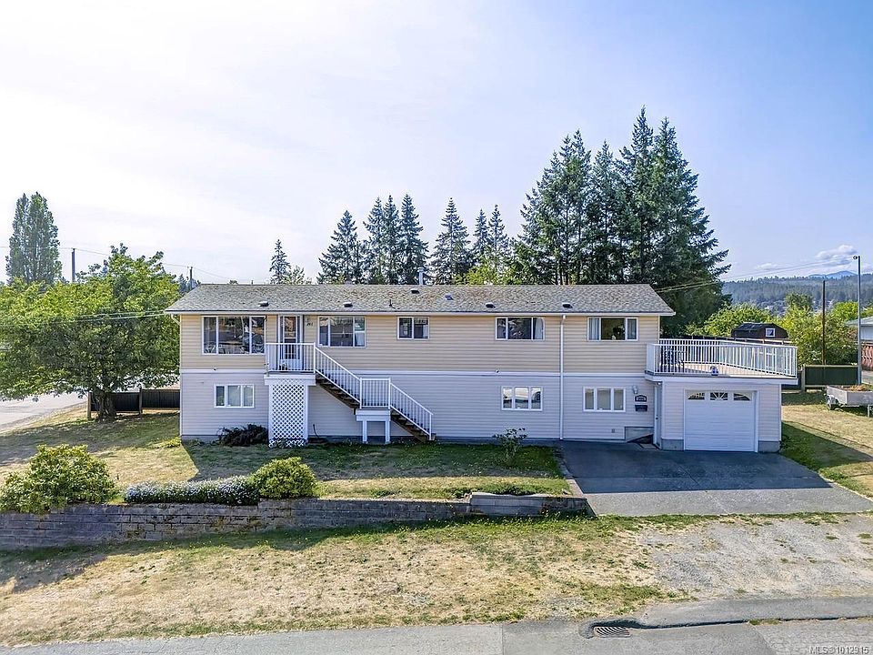 Welcome to this well-maintained 4 bedroom, 2 bathroom family home in the heart of the University District. Originally a rancher, it was professionally raised to add a full basement, maximizing the space on its long, narrow lot. Inside, the main level features classic oak hardwood floors and a bright kitchen with valley views and access to a large wrap around balcony. With a basement-entry layout, this home is ideal for families, offering proximity to 3 elementary schools, 2 high schools and VIU. The well-kept yard and exterior reflect pride of ownership, while the generous parking space between the home and lane provides room for RVs, boats, or extra vehicles. The home may offer suite potential (buyer to verify). Close to public transit and within a 10 to 15 minute walking distance of University Plaza.