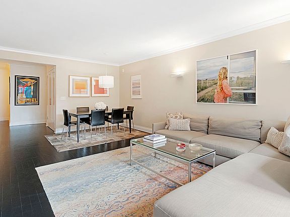 This light and airy, beautiful home has three bedrooms and two bathrooms. The entry foyer opens into an expansive living/dining room, outfitted with custom built-in shelves, newly refinished hardwood floors, and plenty of space for entertaining. There is a renovated windowed kitchen with a SubZero refrigerator, Miele dishwasher, and a breakfast banquette.