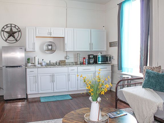 Trendy, Industrial, Partially Furnished, ALL BILLS PAID Loft located in the heart of Seguin's Downtown Historic District!! A spacious studio loft with private bath, Kitchenette, High Speed WiFi, Coin Laundry Facilities and Designated Parking! The Rodeo comes furnished with a Twin Day bed, Smart TV, Microwave, Coffee pot, and Refrigerator. Available for Long Term or Month to Month lease options Must give 30 day notice of move out or will forfeit deposit Application MUST BE submitted through Zillow. Deposit, signed lease and copy of Drivers License due prior to move in.