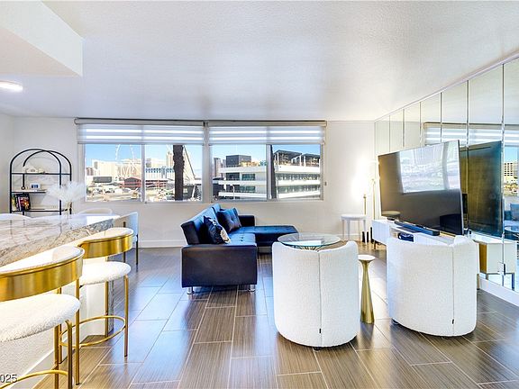 Experience luxury living at the world famous Formula One finish line. This fully remodeled condo blends modern elegance with true Las Vegas energy. Enjoy a sleek kitchen with stainless steel appliances, custom cabinetry, and refined finishes throughout. Step onto your private furnished terrace and take in sweeping panoramic views perfect for relaxing or entertaining. Located in the prestigious Marie Antoinette Condominiums, residents enjoy premium amenities including a pool, fitness center, and tennis/basketball courts in a secure, resort-style setting. Just a short walk to South Strip resorts and only minutes from the airport, this home offers unmatched convenience and style.
