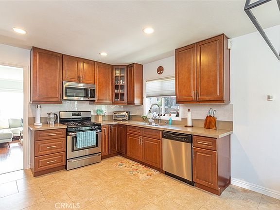Remodeled/ Updated/ Turnkey 2 bedroom, 1 bath house plus a den (could be a 3rd bedroom or office) on a large 6,187 corner lot. There is a 2 car detached garage that has been converted into a 1 bed/1 bath unit w/ kitchen. Tons of natural light throughout the main house. Large remodeled kitchen with custom solid cabinets, quartz countertops, stainless steel appliances, gas oven & cooktop, dishwasher, built-in microwave, tile floors, and a dining area big enough for a nice size table. Inside laundry area in the hallway w/full size stackable washer/dryer. Updated bathroom with newer vanity w/quartz countertop, tiled shower, and porcelain tile flooring. Large, front living room with tons of natural light, built-in electric A/C, faux wood blinds, crown molding & baseboards. Both bedrooms are large with lighted ceiling fans and one room has mirrored closet doors. Beautiful engineered wood floors, and dual pane windows. Newer roof on house portion (2016), updated electrical box, copper plumbing, and newer interior doors. Enjoy a private landscaped/fully fenced backyard, with access from the main house from both the kitchen and den. Backyard has mature landscaping which includes both an avocado and a lemon tree. _Converted Garage_ includes a nice kitchen w/ stainless appliances, gas oven/stove w/lighted hood, concrete flooring throughout, A/C unit, recessed lighting, and dual pane windows. It has a private entrance with a nice size yard/patio space. Plenty of parking w/2 off street parking spaces in front of the garage, plus a brick parking pad next to it for possible 3rd parking space. Close to the 710 & 91 freeways, public transportation and restaurants and shopping. The beach and Downtown Long Beach is only 9 miles away. Check out the video link.