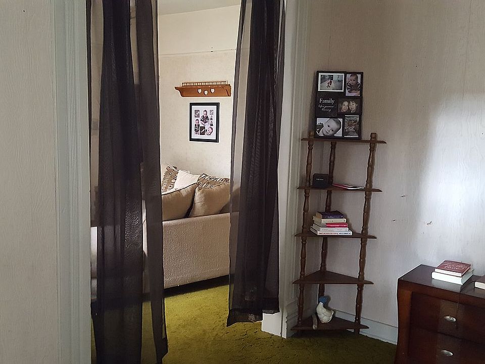 Get cozy in this lovely two bedroom home! Perfect for a small family. Roof repair in 2025, bathroom completely remodeled, joists and flooring has been replaced in bedroom also. 10 foot ceilings!
