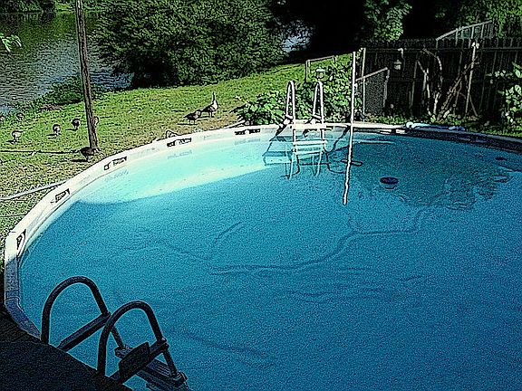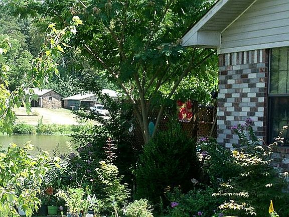 Water view, walk out back yard to lake, brick ranch with front porch, back patio and above ground pool with raised deck, gardens, connects to Corps of Engineers lake access.