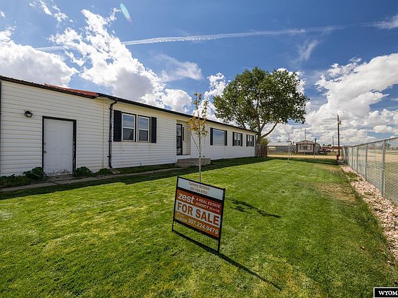 Discover this well-kept modular home sitting on 3 spacious lots in Medicine Bow. The property is fully fenced and beautifully landscaped with a sprinkler system, mature yard, and a welcoming patio perfect for relaxing outdoors. A breezeway conveniently connects the home to a heated garage with a durable metal roof, adding comfort and protection year-round. You’ll love the ample storage options with two sheds (one with 220 power), plus tons of parking space for vehicles, campers, or trailers. Situated on a corner lot in a small, peaceful area, this home offers the perfect blend of privacy and functionality. Call Tammy Britton with Zest Real Estate for your personal Tour 307-259-8752.