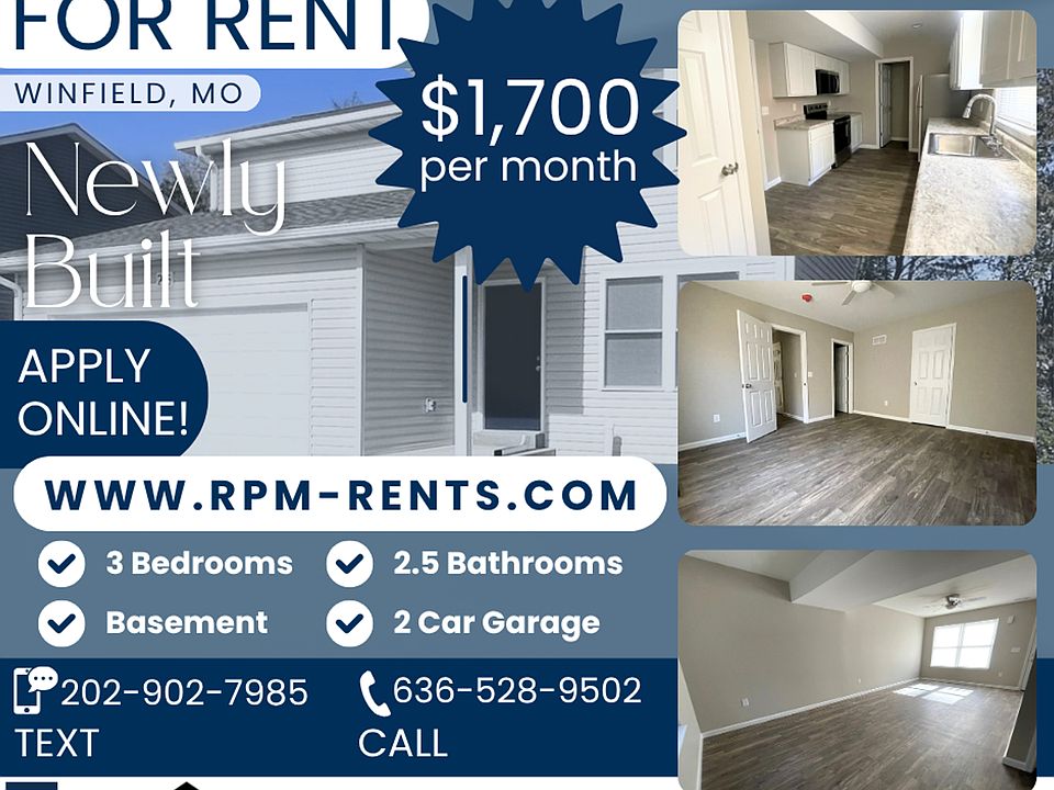 Welcome to this brand new, stunning home located just outside of Troy, with a Winfield address. This property boasts 3 spacious bedrooms and 2.5 well-appointed bathrooms, offering plenty of space for comfortable living. The house features a generous two-car garage, providing ample room for vehicles or additional storage. The basement adds an extra layer of functionality, perfect for a variety of uses. With its modern design and high-quality finishes, this home is a perfect blend of style and convenience. Experience the joy of living in a brand new house, where every detail has been carefully considered for your comfort and satisfaction. Don't miss out on this exceptional property! Be the first to live here, in this brand new house in Winfield, MO.