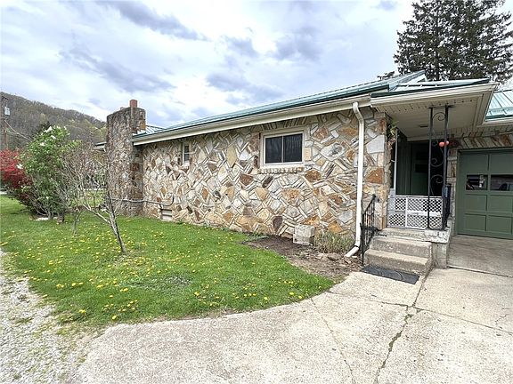 This stone-built, one-level home sits on nearly half an acre filled with fruit trees, a fenced backyard, and a spacious front yard. A screened pavilion overlooks Naugle Run that flows into the Loyalhanna - perfect for adventure lovers. Inside, a stone entryway leads to a flowing floor plan with a spacious family room, kitchen, and dining area. With four bedrooms and an updated full bath, this home offers comfortable main-level living. An attached garage, additional outbuildings, and off-street parking, provide ample space for vehicles and hobbies. A rare find with a potential for additional income. Opportunity awaits in this Laughlintown home!