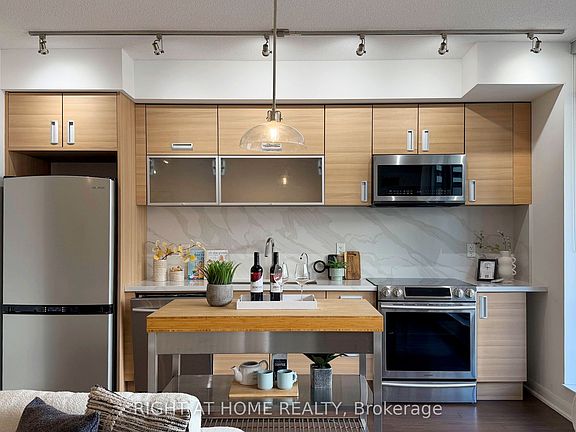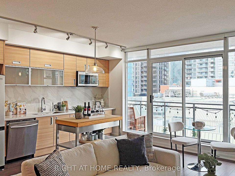 Spacious and beautifully upgraded 1-bedroom suite in The Rezen, a boutique building in the heart of the St. Lawrence Market district. This bright, contemporary unit features 9 ft ceilings, floor-to-ceiling windows with an unobstructed city view, and a large balcony. The kitchen is thoughtfully updated with upgraded cabinetry & counters, stainless-steel Samsung appliances, an oversized sink, a water filtration system, and a functional island. The wide bedroom includes a custom built-in closet system, and the bathroom is complete with an upgraded vanity and a newly renovated modern shower. Incredible walkability - steps to St. Lawrence Market, Union Station, the Financial District, Distillery District, the Waterfront, and a variety of grocery stores, restaurants, and coffee shops. Transit is effortless with the King streetcar and a Bikeshare station right downstairs, and King TTC Station a short walk away. Includes 1 storage locker. Building amenities include a 24-hour concierge, well-equipped gym, stylish party room, rooftop patio, and visitor parking. Enjoy a boutique community feel with quiet floors and friendly neighbours.