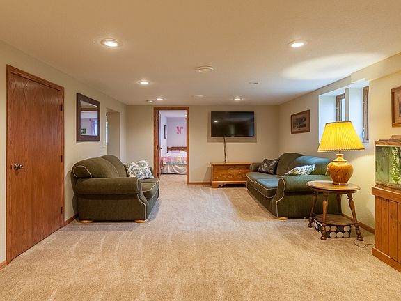 Top to bottom beautifully remodeled 4BR/2Bath rambler home located on a spectacular 1.91acre wooded ravine lot offering plenty of room for outdoor fun and majestic views of the Blue Earth River below! Designed for functionality, comfort and style...this meticulously cared for remodeled home has everything you have been looking for! The main floor features a large eat-in kitchen with center island & walk-in pantry, a generous living room for entertaining, 2 main floor bedrooms, a fantastic tiled bath w/ jet tub & seperate shower, convenient main floor laundry w/ utility sink and the always handy catch-all mudroom. The full basement (beautifully finished in 2013) offers 2 additional bedrooms, an inviting family room, an excercise/rec room area, a 3/4 bath and finally a generous storage/mechanical room that also offers a 2nd laundry option. With not a room left untouched, this complete home remodel also includes updated: windows, exterior paint, shingles/fascia/soffit, interior & exterior doors, trim work throughout, plumbing lines/fixtures, elec wiring/service panel, attic insulation, bonus invisible yard fencing, generous closet space throughout, new flooring/paint/window treatments, efficiency mechanicals/ductwork, updated appliances & modern decor throughout. Beautiful both inside & out....this desirable location on the very edge of town feels like country with the super-sized yard, the gorgeous wooded ravine lot, stunning river views, close to the neighborhood nostalgic sledding hill as well as the fun-for-all nearby snowmobile trails. With optional Lake Crystal or Maple River schools & only a 20mi commute to Mankato....now is the time to make your move & enjoy peaceful small town living!
