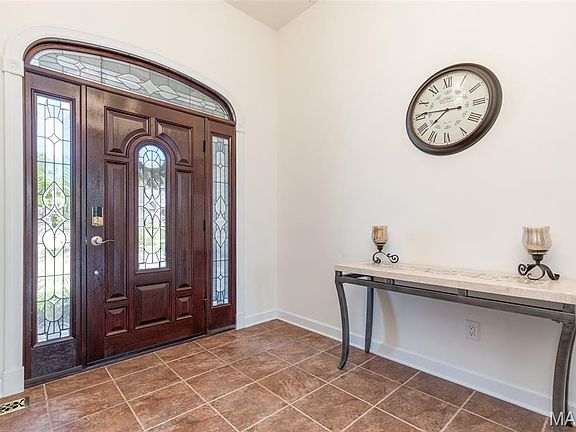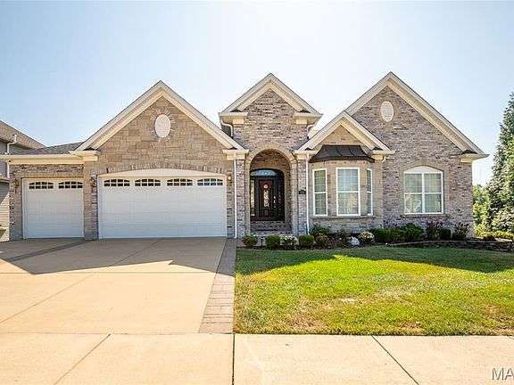 Perched high on a private estate with sweeping views of the Meramec River, this stunning custom built atrium ranch boasts one of the best locations in the Harbor View Estates and is an entertainer's delight! This home offers a distinctive charm perfect for multigenerational living. Unique Stone Exterior! Enter to find 5 spacious bedrooms, 4 full bathrooms, including dual primary suites—each with luxurious custom tile, step-in showers, and soaking tubs. The open-concept kitchen features custom cabinetry, stainless appliances, granite counters, breakfast bar, convection oven & breafast bar. Sliders to upper level screened in composite deck. Hardwood floors span the main level, while plush carpet adds warmth in the bedrooms. All bedrooms include walk-in closets with custom organizing systems. The finished walk-out lower level is designed for entertaining, complete with a large bar that seats 6, a fully equipped second kitchen, and access to a spacious patio. A 5th bedroom and full bath downstairs create an ideal guest or in-law suite and walk out to lower-level patio and expansive fenced in yard. Accessibility is thoughtfully integrated throughout the home, including widened doors, a wheelchair ramp in the garage, and a chair lift on the staircase—these features can remain or be removed per buyer preference. Brand new roof, electric fireplace heater, main floor laundry, and an oversized 3-car garage. New Improved Price!