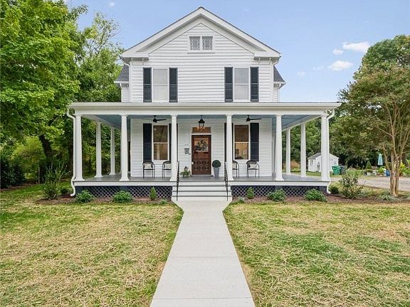 Opportunity to own a piece of history that has been thoughtfully restored & fully renovated down to the studs. Blending timeless craftsmanship w/ modern luxury, this stunning home offers historic charm paired w/today’s most sought-after upgrades.The wraparound porch has original iron railing & restored wood door. Every inch has been revitalized, including a brand-new roof, gutters, downspouts,sidewalks, Trex rear deck, fresh exterior & interior paint, & meticulously restored original windows enhanced w/ aluminum storm protection.Step inside to soaring 10-ft ceilings on the 1st floor & 9-ft ceilings upstairs, bathed in natural light. The home showcases original salvaged hardwood floors blended w/ new heart pine, grand wood stairs and original banister, 3 decorative fireplaces w/ ornate mantels & tilework.The exquisite kitchen is the heart of the home, boasting quartz countertops, ceiling-height cabinetry, a massive island,farmhouse sink, custom tile, & a professional 36” 6-burner gas range. Open-concept layout connects the kitchen, dining, & living areas seamlessly, perfect for entertaining & everyday living.1st-floor primary suite w/bay window, walk-in closet, & spa-like bathroom w/ custom tile & walk-in shower. Additional highlights include home office w/custom stone wet bar, as well as a spacious laundry/mudroom w/ a tankless water heater & ample storage.Upstairs, offers 3 bedrooms, each w/ unique historic details like ornate transom windows and original hardware. Hall bath features restored antique 1910 clawfoot tub & original farmhouse sink, upstairs primary suite is a true retreat w/ slate-tile fireplace,walk-in closet, & indulgent en-suite w/ double vanity, soaking tub, & expansive tiled shower.Outside, enjoy private backyard shaded by mature trees—an ideal escape just minutes from the charm of downtown Ashland, restaurants, shops, & the train station.All-new electrical, plumbing, insulation, &mechanical systems, this home combines the romance of historic design w/ the peace of mind of modern living