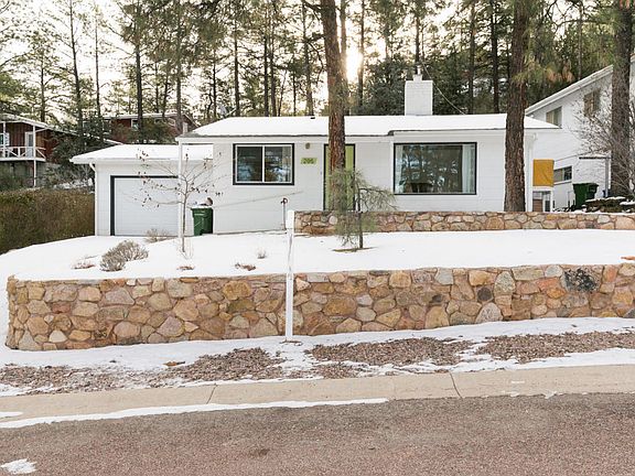 Nestled in the pines and just minutes from the court house square, this charming 2 bedroom, 2 bath home has everything. Kitchen has solid surface counters and all appliances convey. Great family room with new large bay window and gas fireplace. Backyard has privacy with trex deck for enjoying the beautiful setting and surroundings. Garage is deep for one car or truck. This gorgeous home is just a short distance to downtown. Wonderful opportunity to own a beautiful home in a great part of Prescott.