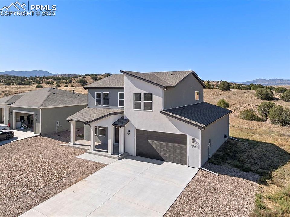 Wake up each day to breathtaking views of Pikes Peak from your kitchen window in this newly built two-story “Hannah” by GTG Tranquility Homes. Backing to peaceful open space, this home blends timeless design with modern comfort, offering versatile spaces for entertaining, relaxing, and everyday living. Step inside from the south-facing covered porch into a bright and welcoming great room. Here you’ll find durable LVP flooring, a contemporary fireplace, ceiling fan, entry closet, and plenty of room for a large dining table. The chef’s kitchen is the heart of the home, featuring upgraded white cabinetry, a contrasting center island with bar seating, quartz countertops, task lighting, a five-burner gas range, pantry, and a cozy breakfast nook. Just off the kitchen, a spacious covered patio invites you to enjoy quiet mornings or evening sunsets overlooking the natural landscape. Upstairs, an open staircase leads to three comfortable bedrooms, a full bath with custom vanity, and a conveniently located laundry room. The primary suite is a true retreat, complete with a sitting area, expansive walk-in closet, and a luxurious five-piece bath. Enjoy custom tile accents, dual vanities, a soaking tub, and a walk-in shower with glass enclosure that frames mountain views. The finished basement offers even more living space—perfect for game day, movie nights, or hosting guests. A large fourth bedroom provides privacy for visitors or teens, while an unfinished flex room offers potential for a wet bar, kitchenette, or hobby space. The oversized three-car tandem garage adds plenty of room for vehicles, storage, or outdoor gear. Located in the desirable High Meadows neighborhood of southwest Florence, this home is just 40 minutes from Colorado Springs and minutes from historic Main Street. Explore local shops, art galleries, restaurants, and breweries, or take advantage of the nearby Arkansas River for world-class rafting, fishing, and miles of scenic trails.