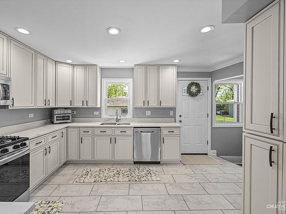 An affordable price to live in this area! Beautifully remodeled, spacious 3 Bedroom ranch home in convenient Itasca neighborhood. Gorgeous Kitchen with porcelain tile floors, antique white cabinets, quartz counter tops and modern stainless steel appliances. Front Living Room, Dining Room and separate step down Family Room. Upgraded Full Bathroom and Large Primary Bedroom with walk in closet. Newer roof and windows! Finished partial basement with Rec Room and Laundry. Mudroom with built in bench and storage. Huge concrete patio and oversized 2 car garage. All of this conveniently located within walking distance to downtown restaurants, shopping, parks, Metra and Itasca Country Club.