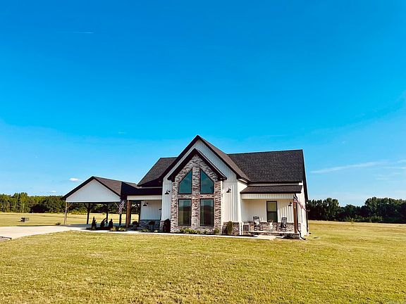 Soaring 24 ft ceilings greet you when you walk into this 3 bed, 2 bath, 2,282 sq. ft. modern farmhouse. Sitting on 7.5 beautiful acres and built in 2022, this home features a 22x22 split loft, 2 story fireplace, and built in booth seating in the great room. The dual mud/laundry room has wall-to-wall cabinetry to conceal your washer and dryer and tons of extra storage. The beautiful kitchen has a custom range hood, storage galore and also features a hidden pantry under the stairs. Zero-maintenance, stained concrete flooring flows throughout the entire house. The loft has plenty of room for your office or game room and also includes a shiplap covered platform currently used for extra sleeping space. Outside you'll find 3 covered porches and a sail shade covered deck with a built-in stock tank pool. On the opposite side of the property a separate driveway leads to a 30x30 shop complete with a heated and cooled home gym. This side of the property also has extra parking, raised garden beds, a chicken coop and a fire pit area. This is a dream property that you don't want to miss!