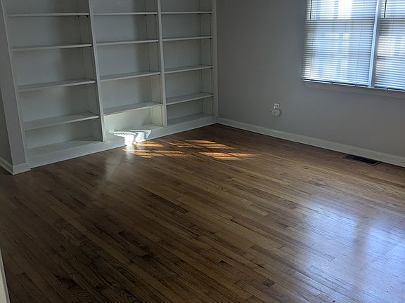 Hardwood floorsPool in the summerBuilt in bookshelvesCute dining areaBack porch