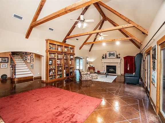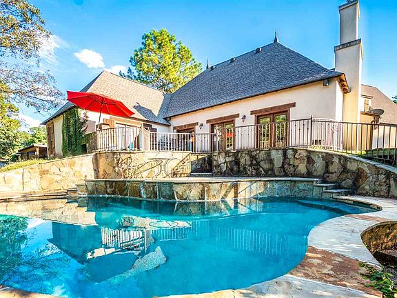 Cottage style beauty on cul-de-sac in ever popular "Hunters Creek"! This home features a great floor plan, soaring ceilings in family/combo dining with beautiful beams and custom built-in book shelves with rolling ladder and wood burning fire place! You will love the open kitchen with built-in refrigerator and stainless appliances. Cook top and fireplaces run on propane. Kitchen and breakfast area are open and feature separate patio, nice pantry and utility room, conveniently located nearby. Downstairs floors are stained concrete and all new carpet in master and upstairs! Large master suite and second bedroom are downstairs. Oversized master has exit to outdoor patio. The second bedroom is also downstairs and 2 additional bedrooms and bath are up plus a small bonus room for kids playroom! This home features 2 patio areas. One patio is located off the kitchen and breakfast for easy access to large side yard for play area. The patio off the family and master has an upper level for seating with iron fencing great for keeping small children from the lower pool area. On the lower area, there is also an outdoor fireplace to enjoy! This area backs to a wooded piece of land so it's totally private. Come put your own personal touch on this home and enjoy living in one of the most highly sought after neighborhoods in Longview! Home has new roof in 2019 and new master shower.
