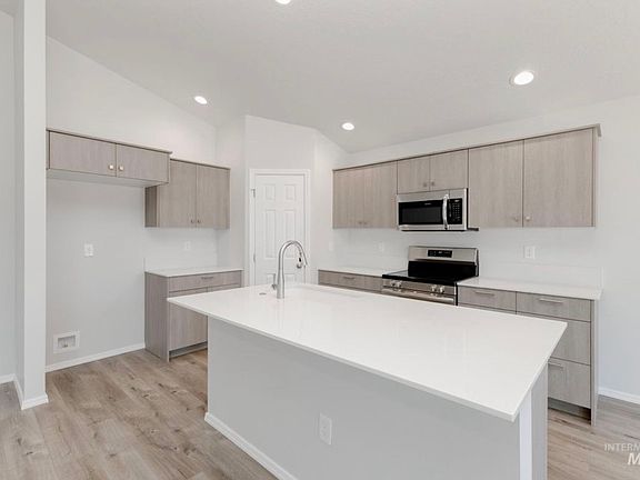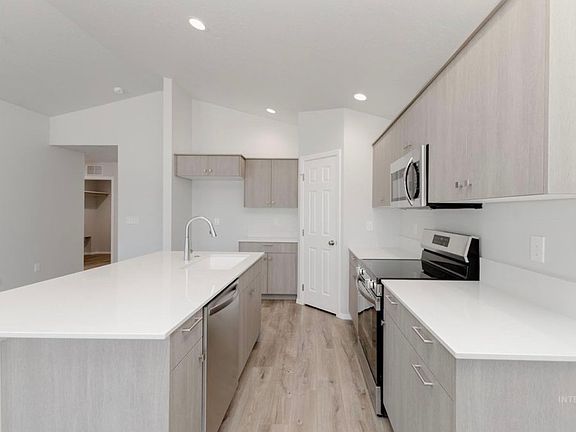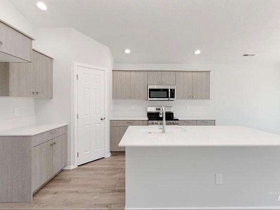 This brand new home located in vibrant Caldwell, Idaho welcomes you with open arms. Live your best single level life. Enter inside to discover a very flexible layout with the kitchen, living room, and primary suite all at the rear of the home, making it easy to forget the world outside exists. The kitchen comes with stainless steel appliances and stylish solid surface countertops, adding both functionality and aesthetics. Spill onto the back patio to enjoy fresh air and perfect Idaho weather. The primary suite feels like a true oasis, tucked away on the opposite end of the home from the other bedrooms for added privacy. The flex room offers you an additional living space to work, play, or unwind, making it easy to adjust the home to fit your needs.