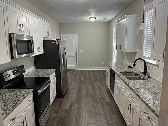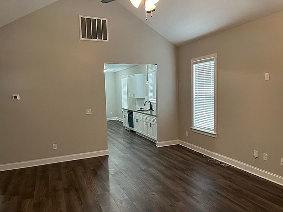 Amazing location! Located in Grovetown, just minutes from Fort Gordon Gate 2 and close to the medical district. This move in ready home offers 3 bedrooms and 2 bathroom with an open floor plan. Wood look floors run throughout the common area. The kitchen boasts fresh white cabinets, granite counter tops and stainless steel appliances. The great room has vaulted ceilings and neutral paint neutral paint color. Primary bedroom has like new carpet, walk in closet and attached bathroom with dual sink vanity and shower. Two additional bedrooms are similar size and sit on either side of the second full bath with shower/tub combo. HOA takes care of the yard. Make sure you schedule a showing today!