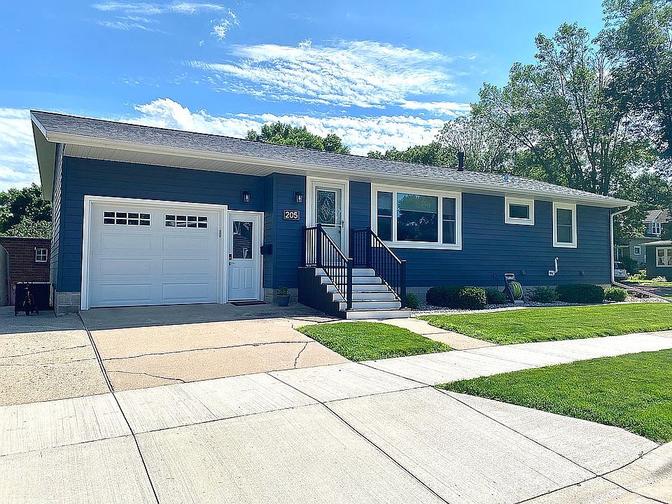 Welcome to 205 Kiefer Street NE, a charming corner lot property with meticulous landscaping. This home features 4 bedrooms and 2 bathrooms, including a finished basement with an additional kitchen, ideal for versatility and extra living space. Recent upgrades include new shingles and composite front steps installed in 2022, enhancing both curb appeal and functionality. The exterior boasts new dark blue steel siding, soffit, and fascia added in 2020, while the interior received new trim, doors, and carpet in 2019. The home also offers new windows installed in 2017 and a furnace replaced the winter before. A double detached garage equipped with heating and AC adds convenience and practicality to this clean and well-kept property, which is move-in ready.