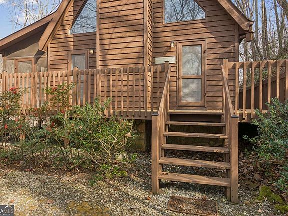 Seeking complete privacy and the soothing sound of a creek? This charming log cabin offers it all. Tucked away in nature, it features 2 bedrooms and 2 full baths, a spacious great room with a stone wood-burning fireplace cathedral ceiling, open floor plan and a master loft suite with its own full bath and private deck with seasonal mountain views. The main level bedroom also provides private access to a full bath for ultimate convenience. Relax on the dreamy screened porch and take in the peaceful ambiance, or gather with friends around the firepit under the stars. Laurel Branch borders the property, filling the air with the calming sound of flowing water. A perfect retreat for anyone craving serenity, comfort, privacy and natural beauty. NO SHORT TERM RENTALS ARE ALLOWED IN THIS COMMUNITY