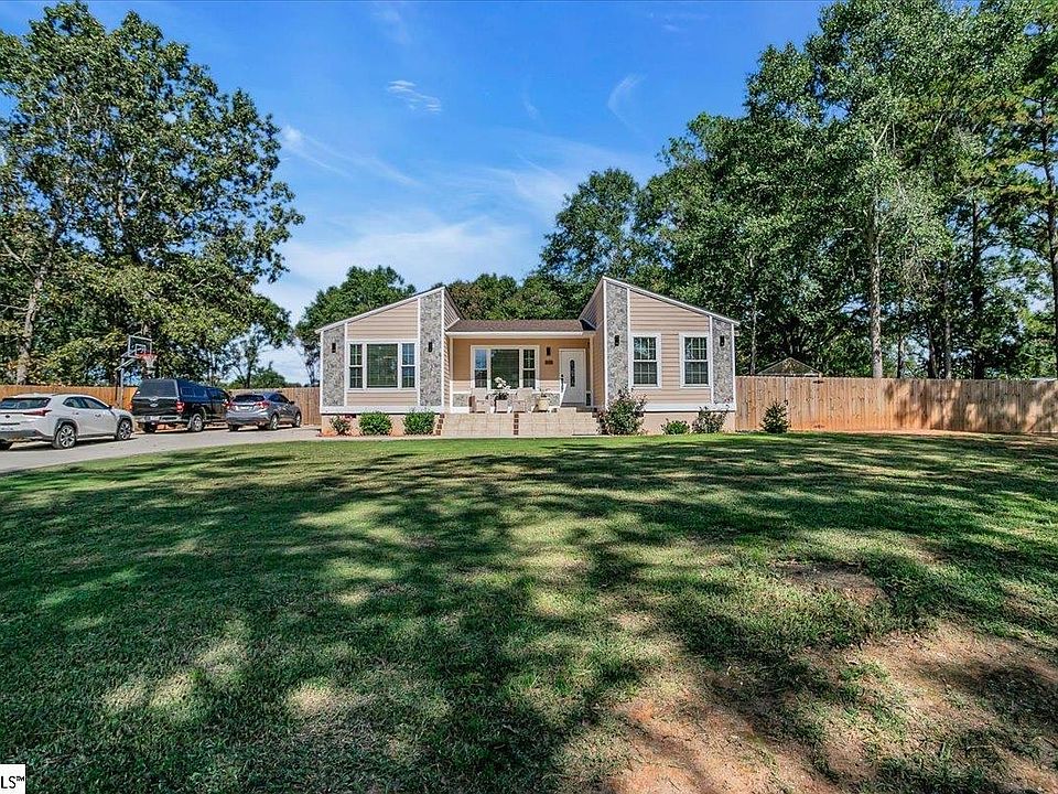 Beautiful Custom-Built Cottage on 1.6 Acres! Nestled between Fountain Inn and Woodruff, this stunning 3-bedroom, 2-bath home offers the perfect blend of privacy, charm, and modern convenience. Built just three years ago, the home features upgraded finishes throughout and sits on a generous 1.6-acre lot, ideal for anyone wanting space to spread out and enjoy the outdoors. An expansive front porch welcomes you into a warm entryway and spacious family room. Just beyond, a large sunroom provides a serene view of the backyard and a comfortable spot to relax year-round. The custom kitchen boasts gas appliances and opens to a bright dining/breakfast area filled with natural light. Both bathrooms include oversized showers, offering a touch of luxury. The master bedroom connects directly to the sunroom, perfect for enjoying your morning coffee. This property is a rare find, offering acreage, quality construction, and thoughtful design, all in a peaceful and location. Seller is willing to leave furniture with acceptable offer.