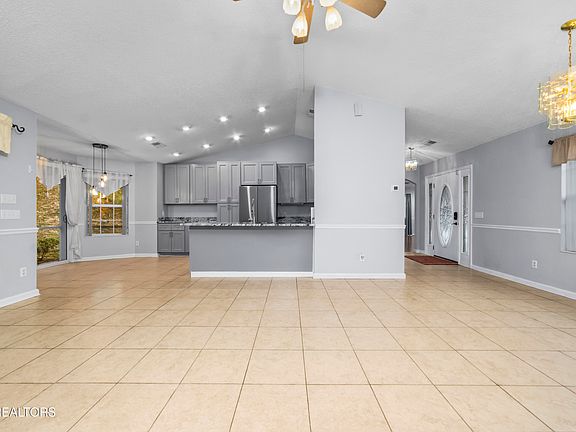 One-Level Living with Mountain Views in Sevierville! This beautifully maintained, handicap-accessible home offers easy one-level living with no mountains to climb and breathtaking views in multiple directions. Featuring 3 bedrooms and 2 full baths, the thoughtfully designed split floor plan provides both comfort and privacy, making it ideal for multi-generational living. The spacious master suite is located just off the family room and includes cathedral ceilings, a walk-in closet, and a luxurious en-suite bath with double sinks and a walk-in shower. Cathedral ceilings continue through the family room and open living/dining areas, where natural light pours in from every corner. Major updates have been completed throughout, and all systems have been consistently maintained for true peace of mind. Tile and laminate floors span the homes most travelled areas. Outdoors, enjoy a screened-in porch, covered patio, level backyard, and beautifully landscaped grounds—all privately tucked into a cul-de-sac with no obstructions to your mountain views. The property also includes a storage shed, underground dog fence with receiver, and all new appliances. Conveniently located just minutes from downtown Sevierville, this move-in ready home blends accessibility, beauty, and practicality in one perfect setting.