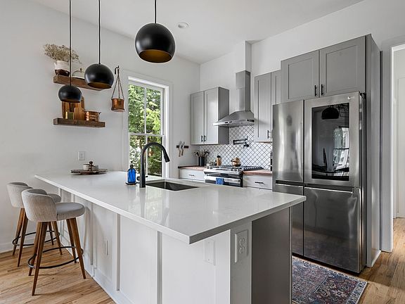 Retreat to the massive master suite, where relaxation awaits you after a long day. Here you will find a luxurious queen size bed, dresser, walk in closet and a stunning en suite bathroom. Upstairs, you will find the adorable bedrooms that offer a cozy haven for restful nights. One of the rooms has a queen size bed, and the other room can double as a great home office with a desk and chair, and a day bed with two twin size beds, perfect for accommodating an overnight guest. These two bedrooms share a bathroom with a beautiful tile shower!